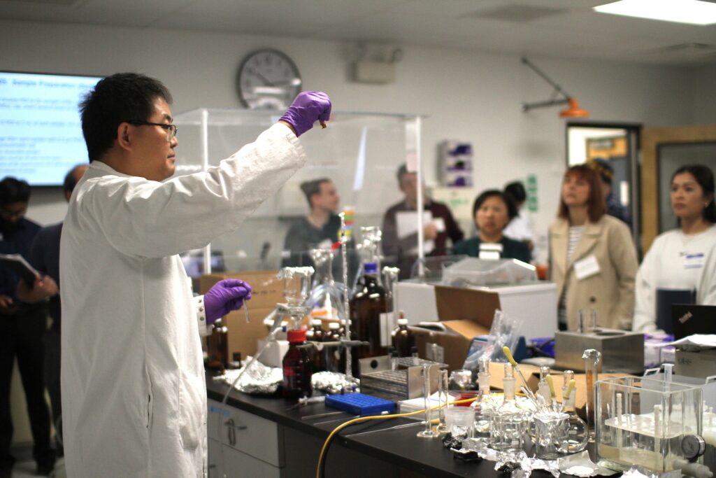 SCCWRP’s Dr. Wayne Lao demonstrates how to use high-performance liquid chromatography to analyze samples for microcystin toxins during a three-day California Environmental Laboratory Accreditation Program (ELAP) workshop at SCCWRP