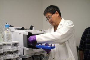 SCCWRP’s Dr. Wayne Lao prepares harmful algal bloom (HAB) samples for analysis.